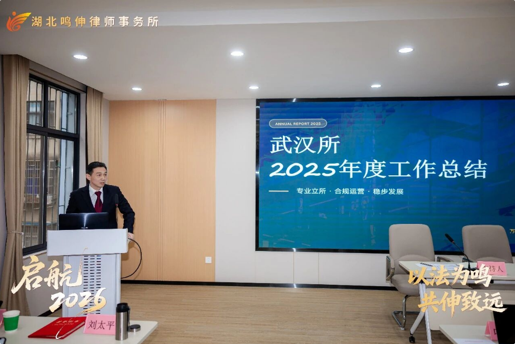 龙腾盛世,马跃新程。2026年1月26日,湖北鸣伸律师事务所“龙马精神·启航2026”年度总结暨表彰大会隆重举行。全所同仁欢聚一堂,共同回顾2025年的奋斗足迹,表彰先进典范,展望2026年的宏伟蓝图。会议由刘太平主任主持,现场气氛庄重而热烈,充满奋进的力量。